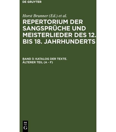 De Gruyter Repertorium der Sangsprüche und Meisterlieder des 12. bis 18. Jahrhunderts / Katalog der Texte. Älterer Teil (A - F)