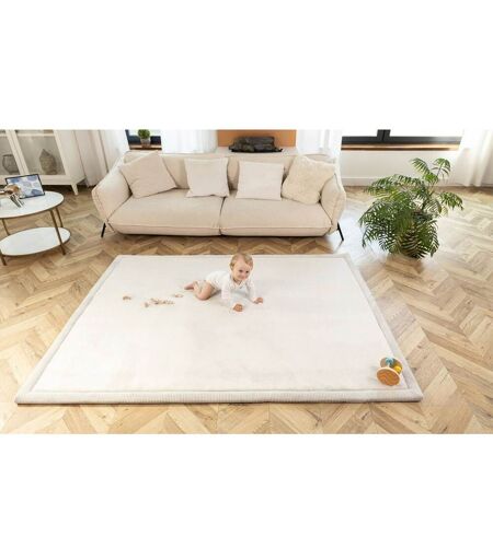 Der Kinderteppich von Hakuna besteht aus Korallensamt, Memory-Schaum und einer rutschhemmenden Rückseite. Sie ist extra in einem großen Format gefertigt, damit Dein Nachwuchs sicher und komfortabel spielen kann. Die Decke lässt sich vielseitig verwenden: Sie ist auch für Fitnesstraining als Unterlage verwendbar. Pastelltöne ergänzen auf sanfte Art Dein Wohnambiente. Kinderteppich von Hakuna Pastell-Design, abgenähte Kanten 200(L) x 150(B) x 2(H) cm geruchlos, geeignet für Fußbodenheizung frei von BPA-, Phthalat*, Formamid, und PAK Handwäsche Polyester Die Samtmatte mit Memory-Schaum besteht aus drei Schichten: Außen schmiegt sich Korallensamt an die haut Deines Babys und sorgt für weichsten Hautkontakt. Innen ist die Decke mit elastischem Memory-Schaum für bequemes Spielen und Krabbeln ausgestattet. Er ist zwei Zentimeter breit und nimmt seine Größe im Vergleich zu Alternativen erheblich schneller wieder an – spätestens innerhalb von ein bis zwei Tagen ist das Design wieder so geformt wie vor der Belastung. Die Rückseite ist extra rutschhemmend gefertigt. So ist Dein Mini beim Krabbeln, wenn er sich dreht oder strampelt, immer sicher. Die Kanten sind abgenäht. Das große Format der Decke von 200 Zentimeter Länge mal 150 Zentimeter Breite ist ideal zum Spielen und Herumkrabbeln geeignet. Die Decke wirkt isolierend und kann auch auf kalten oder harten Böden ausgelegt werden. Sie ist auch für eine Fußbodenheizung geeignet. Die Decke lässt sich auch für Fitnessübungen, Yoga oder zum Spielen mit Größeren perfekt verwenden. Die hochwertig verarbeitete Decke mit ihrem pastellfarbenen Design ergänzt Deine Einrichtung in Wohnzimmer oder Kinderzimmer. Der Kinderteppich wird gefaltet geliefert und muss im Gegensatz zu vakuumverpackten Teppichen nicht gebügelt werden. Die Kinderspielmatte ist aus BPA-*, Phthalat-, Formamid- und PAK-freiem Polyester hergestellt. Sie lässt sich im Handumdrehen mit einem Staubsauger oder einem feuchten Tuch und Seife reinigen. Der flauschige Teppich ist bei 30 Grad handwaschbar. Material Oberstoff: 100% Polyester Füllung: Polyurethan Rückseite Beschichtung: Polyvinylchlorid *Selbstverständlich BPA-frei, wie gesetzlich vorgeschrieben ...