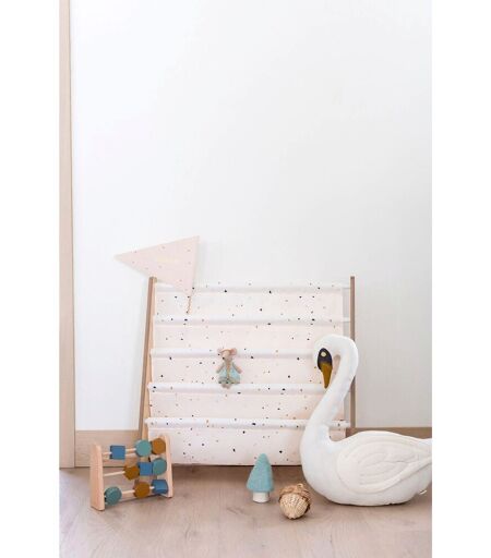 Im Bücherregal Terrazzo von 3 Sprouts finden alle Lieblingsbücher den wohlverdienten Platz. Material: Bespannung: 100 % recyceltes Polyester, Rahmen: MDF, Stangen: Metall Ausstattung: 5 Stangen, 2 Seitenwände, 1 Stoffbahn Funktionen: 4 Schubfächer für Bücher Maße: 62(L) x 25(B) x 61(H) cm Ein dekoratives Möbelstück für jedes Kinderzimmer – das praktische Bücherregal mit vier Fächern hält die Lieblingsbücher auf einen Blick bereit. So kann schnell das Gewünschte gegriffen werden. Das Bücherregal bietet die optimale Höhe für kleine Bücherwürmer. Die Aufbewahrung mit dem Buchdeckel nach vorn ist mit einem Lerneffekt verbunden: Auch kleinste Fans erkennen so anhand des Titelbildes, welches Buch sie angucken oder vorgelesen bekommen möchten. Hinweis Die Details und Farben des Produkts können unterschiedlich ausfallen. ...