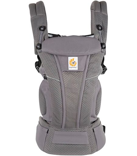 Für ein noch leichteres und angenehmeres Tragegefühl: Das innovative SoftFlex Meshmaterial der Omni Breeze von Ergobaby sorgt für maximale Luftzirkulation. Altersempfehlung: ab Geburt (mind. 3,2 kg bzw. 50,8 cm) Belastbarkeit: bis 20,4 kg Trageweisen: Bauchtrage (Blickrichtung nach innen), Fronttrage (Blickrichtung nach außen), Rückentrage, Hüfttrage Verschluss: einstellbarer Hüftgurt (45,4-145 cm) mit Schnalle, anpassbare Schultergurte (40-110 cm) mit Schnallen an der Taille Gewicht: 1140 g Ausstattung: größenverstellbarer Steg mit farbigem Leitsystem, anpassbare Kopfstütze mit integrierter Kapuze, Seitentaschen am Taillengurt, reflektierende Akzente, gepolsterte Schultergurte mit Über-Kreuz-Option, gepolsterte Lordosenstütze Material: atmungsaktives SoftFlex Meshgewebe (maschinenwaschbar) Sicherheit und Komfort In der Omni Breeze von Ergobaby sind Neugeborene ab einem Gewicht von 3,2 Kilogramm sicher aufgehoben: Die Stegbreite lässt sich mittels Klettlaschen stufenlos verstellen, das Rückenpanel und die Kopfstütze können ebenfalls individuell auf Dein Baby angepasst werden. So wächst die Trage mit Deinem Baby bis ins Kleinkindalter mit und garantiert, dass es in jedem Alter in der ergonomischen Anhock-Spreiz-Haltung bzw. M-Position sitzt. Für noch mehr Sicherheit sind verschieden farbige Linien am Steg angebracht, die je nach Körpergröße des Babys als Guide benutzt werden können. Die anpassbare Kopf- und Nackenstütze stützt den Kopf optimal, wenn die Kleinen schlafen. Sitzen die Kinder mit Blickrichtung nach vorne, kann die Stütze nach außen weggefaltet und mit Knöpfen befestigt werden. Die in der Kopfstütze integrierte Kapuze bietet eine Extraportion Sicht- und Sonnenschutz für die Kleinen. Das atmungsaktive SoftFlex Meshmaterial der Omni Breeze mit seiner rautenförmigen Netzstruktur befindet sich auf der gesamten Trage und sorgt so an allen Stellen für maximale Luftzirkulation und ein angenehmes Tragegefühl für Mama und Papa. Schaumstoffaussparungen im Taillengurt und der gepolsterten Lordosenstütze sorgen für maximale Belüftung. Reflektierende Akzente an der Tragesorgen im Dämmerlicht für mehr Sicherheit. Für noch mehr Komfort verfügt die Trage über eine abnehmbare Gürteltasche und eingearbeitete Seitentaschen am Taillengurt – hier finden Schlüssel, Handy und Co. einen sicheren Platz. Trageweisen und Befestigung Die Omni Breeze lässt sich auf dem Bauch mit Blickrichtung nach innen und außen, auf dem Rücken oder auf der Hüfte tragen. Die weich gepolsterten Schultergurte sind auf dem Rücken kreuzbar (Bauchtrage) oder im Rucksack-Stil (Bauch- und Rückentrage) verwendbar. Das Gurtsystem ist flexibel gestaltet, sodass der Nachwuchs angenehm getragen werden kann. Der Hüftgurt ist gepolstert und kann in der Länge von 45,4 bis 145 Zentimetern verstellt werden. Er verteilt das Gewicht gleichmäßig und sorgt so für einen hohen Tragekomfort. Auch die Schultergurte können in der Länge von 40 bis 110 Zentimeter verstellt und so an den Träger... ...