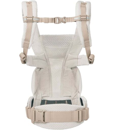 Für ein noch leichteres und angenehmeres Tragegefühl: Das innovative SoftFlex Meshmaterial der Omni Breeze von Ergobaby sorgt für maximale Luftzirkulation. Altersempfehlung: ab Geburt (mind. 3,2 kg bzw. 50,8 cm) Belastbarkeit: bis 20,4 kg Trageweisen: Bauchtrage (Blickrichtung nach innen), Fronttrage (Blickrichtung nach außen), Rückentrage, Hüfttrage Verschluss: einstellbarer Hüftgurt (45,4-145 cm) mit Schnalle, anpassbare Schultergurte (40-110 cm) mit Schnallen an der Taille Gewicht: 1140 g Ausstattung: größenverstellbarer Steg mit farbigem Leitsystem, anpassbare Kopfstütze mit integrierter Kapuze, Seitentaschen am Taillengurt, reflektierende Akzente, gepolsterte Schultergurte mit Über-Kreuz-Option, gepolsterte Lordosenstütze Material: atmungsaktives SoftFlex Meshgewebe (maschinenwaschbar) Sicherheit und Komfort In der Omni Breeze von Ergobaby sind Neugeborene ab einem Gewicht von 3,2 Kilogramm sicher aufgehoben: Die Stegbreite lässt sich mittels Klettlaschen stufenlos verstellen, das Rückenpanel und die Kopfstütze können ebenfalls individuell auf Dein Baby angepasst werden. So wächst die Trage mit Deinem Baby bis ins Kleinkindalter mit und garantiert, dass es in jedem Alter in der ergonomischen Anhock-Spreiz-Haltung bzw. M-Position sitzt. Für noch mehr Sicherheit sind verschieden farbige Linien am Steg angebracht, die je nach Körpergröße des Babys als Guide benutzt werden können. Die anpassbare Kopf- und Nackenstütze stützt den Kopf optimal, wenn die Kleinen schlafen. Sitzen die Kinder mit Blickrichtung nach vorne, kann die Stütze nach außen weggefaltet und mit Knöpfen befestigt werden. Die in der Kopfstütze integrierte Kapuze bietet eine Extraportion Sicht- und Sonnenschutz für die Kleinen. Das atmungsaktive SoftFlex Meshmaterial der Omni Breeze mit seiner rautenförmigen Netzstruktur befindet sich auf der gesamten Trage und sorgt so an allen Stellen für maximale Luftzirkulation und ein angenehmes Tragegefühl für Mama und Papa. Schaumstoffaussparungen im Taillengurt und der gepolsterten Lordosenstütze sorgen für maximale Belüftung. Reflektierende Akzente an der Tragesorgen im Dämmerlicht für mehr Sicherheit. Für noch mehr Komfort verfügt die Trage über eine abnehmbare Gürteltasche und eingearbeitete Seitentaschen am Taillengurt – hier finden Schlüssel, Handy und Co. einen sicheren Platz. Trageweisen und Befestigung Die Omni Breeze lässt sich auf dem Bauch mit Blickrichtung nach innen und außen, auf dem Rücken oder auf der Hüfte tragen. Die weich gepolsterten Schultergurte sind auf dem Rücken kreuzbar (Bauchtrage) oder im Rucksack-Stil (Bauch- und Rückentrage) verwendbar. Das Gurtsystem ist flexibel gestaltet, sodass der Nachwuchs angenehm getragen werden kann. Der Hüftgurt ist gepolstert und kann in der Länge von 45,4 bis 145 Zentimetern verstellt werden. Er verteilt das Gewicht gleichmäßig und sorgt so für einen hohen Tragekomfort. Auch die Schultergurte können in der Länge von 40 bis 110 Zentimeter verstellt und so an den Träger... ...