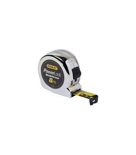Das 8 Meter lange Micro Powerlock Blade Armor von STANLEY (Genauigkeitsklasse II) ist ein sehr kompaktes Bandmaß in Profiqualität, aber 13% kleiner als Powerlock Standard. Das extra-starke 25mm breite Band ist gebogen und vollständig mit Mylar-Schutzschicht überzogen. Auf den ersten 8cm ist es zusätzlich mit Blade Armor Folie überzogen, was das Bruchrisiko um 90% reduziert. Der Endhaken ist dreifach vernietet, verschiebbar für Innen- und Außenmessung. Das robuste Gehäuse ist schlagfest, verchromt und poliert. Das Maßband Micro Powerlock Blade Armor verfügt außerdem über einen Feststeller, einen Gürtelclip und einen kontrollierten automatischen Bandrücklauf für optimalen Schutz des Endhakens. ...
