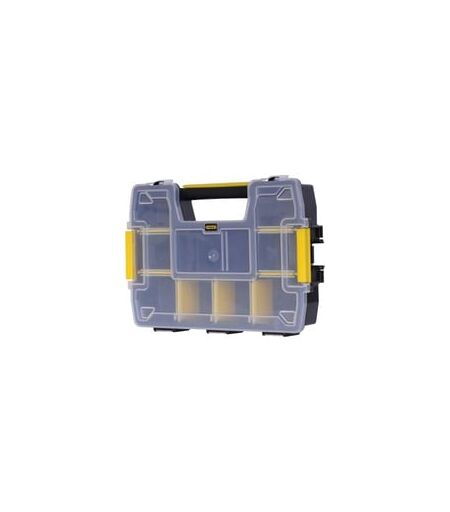 Der Organiser Sortmaster von Stanley erlaubt dank seines innovativen Verriegelungssystems die Verbindung und den Transport von bis zu drei Organisern. Die seitliche Verriegelung ermöglicht ein sicheres Stapeln der Organiser. Die Spezielle Konstruktion des Deckels hält Kleinteile und Einsätze an ihrem Platz. ...