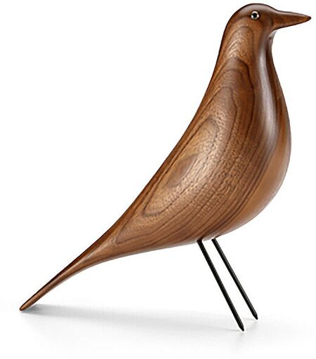 Der House Bird, seit Jahrzehnten dekorativer Teil der Einrichtungs-Collage im Eames House, war eines der Lieblingsstücke von Charles und Ray Eames. Körper: Nussbaum, klarlackiert. Füsse: Eisendraht. Holzherkunft: Nussbaum (Juglans nigra) aus Westeuropa und/oder Polen. ...