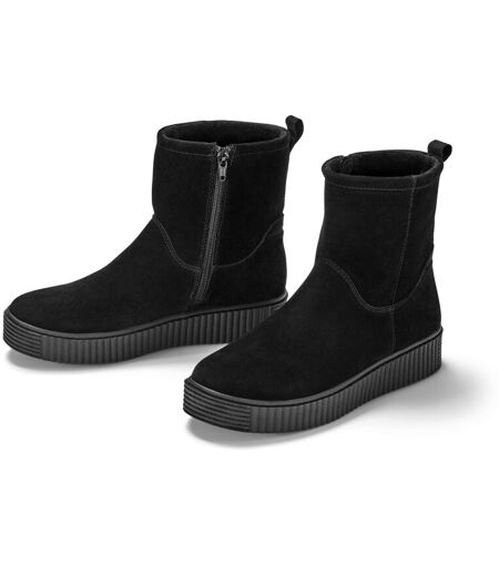 Veloursleder-Boots Farbe: Schwarz Material: Obermaterial 100% chromfrei gegerbtes Leder Innentextil 100% Polyester Laufsohle Kunststoff Weiches, wärmendes FutterReissverschluss auf der InnenseiteWeich gepolsterte DecksohleErhöhte, leicht profilierte LaufsohleRückwärtige Schlaufe am Schaft für einen optimalen EinstiegObermaterial aus hochwertigem, chromfrei gegerbtem LederDiese Boots schonen die Umwelt. ...