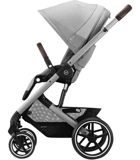Maximale Mobilität und hoher Komfort: Der Balios S Lux von Cybex Gold überzeugt als ein praktisches 4-in-1-Travelsystem. Durchdachte Funktionen, All-Terrain-Räder und die Möglichkeit der Verwendung ab der Geburt erweisen sich als schlagkräftige Argumente für abenteuerlustige Familien. Altersempfehlung: ab Geburt Belastbarkeit: bis 22 kg, Korb bis 5 kg Verwendung: geländetauglich; im Travelsystem mit Babyschale (separat erhältlich); mit Tragewanne Cot S oder Cocoon S (separat erhältlich) Klappmaß: 40(L) x 48,5(B) x 65(H) cm Gewicht: 11,7 kg Räder: unplattbare All-Terrain-Räder, Allrad-Federung, schwenkbare Vorderräder Lieferumfang: Gestell mit Rädern und Einkaufskorb, Sportsitz mit Verdeck und Sicherheitsbügel Gestell: aus Aluminium, einhändig und freistehend faltbar, einhändig verstellbarer Schiebegriff, Feststellbremse Sportsitz: wendbar, 5-Punkt-Gurt, einhändig 3-fach verstellbare Rückenlehne mit flacher Liegeposition, 3-fach verstellbare Beinstütze, verstellbares XXL-Sonnenverdeck (UV-Schutz 50+) mit Mesh-Einsatz, waschbarer Bezug Sicherheit und KomfortAb Geburt einsetzbar: Der Balios Lux S punktet mit einer flachen Liegeposition. So kann bereits ein Neugeborenes mit an Bord sein. Der Sportsitz lässt sich in Fahrtrichtung oder mit Blick auf die Eltern montieren. Neugierig die Umgebung betrachten oder selig schlummern – alles ist möglich. Besonders komfortabel: Die Rückenlehne lässt sich mit nur einer Hand dreifach neigen. Auch die Beinstütze kannst Du an die Bedürfnisse Deines Kindes anpassen: Auch sie ist dreifach verstellbar. Der Wagen ist mit einem XXL-Sonnenverdeck versehen. So bleibt die Sonne zuverlässig auf Abstand. Der atmungsaktive Mesh-Einsatz sorgt für ein angenehmes Klima im Inneren. Gerade im Sommer erweist sich das als großer Vorteil. Der verstellbare 5-Punkt-Gurt sichert Dein Kind während der Fahrt. Du brauchst nur eine Hand, um den Gurt in eine ideale, körpergerechte Position zu bringen. Am Spielbügel findet Dein Mini Halt. Der Bügel lässt sich bei Bedarf entfernen. Gestell und FahrwerkDas Gestell ist aus leichtem und dabei stabilem Aluminium hergestellt. Damit verschieden große Eltern den Wagen komfortabel schieben können, lässt sich der Schieber in der Höhe anpassen. Die pannenfreien All-Terrain-Räder sorgen für eine unbeschwerte Fahrt, auch wenn sich der Untergrund als etwas holpriger erweist. Neu: Der Fahrkomfort profitiert von der Kombination der Vorderradfederung mit einer innovativen, rahmenbasierten Hinterradfederung. So kann der kleine Passagier auch Querfeldeinfahrten vergnügt genießen. Die Vorderräder können bei Bedarf für Geradeausfahrt fixiert werden. Die Feststellbremse sorgt für einen sicheren Stopp, wenn Ihr eine Pause einlegt oder die Fahrt beendet ist. Die Bremse lässt sich bequem mit dem Fuß betätigen. Im großen Untergestellkorb finden Einkäufe, Wickel-Accessoires oder das Lieblingsspielzeug Platz. LieferumfangIm Set sind das Gestell mit Rädern, der Einkaufskorb und der wendbare Sportsitz mit... ...