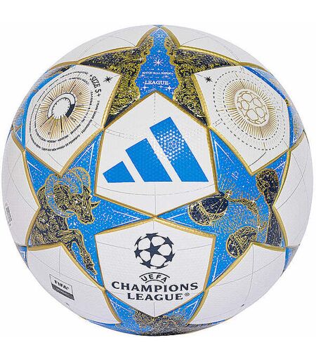 Die besten Teams Europas vereinen sich unter den Sternen und kämpfen um ihr Fußballschicksal. Dieser adidas Ligaball mit seinem auffälligen Design, das vom offiziellen UCL-Ligaball inspiriert ist, verfügt über eine nahtlose Konstruktion und eine widerstandsfähige Butyl-Blase, die für ein berechenbares Spiel sorgen. Von astronomischen Uhren und Tierkreiszeichen inspirierte Grafiken machen ihn zu einem echten Blickfang beim Training und bei Punktspielen. Details: Ein vielseitiger Ball mit einem farbenfrohem Design, das vom offiziellen UCL-Ligaball inspiriert ist. Nahtlose TSBE-Konstruktion Butyl-Blase Entspricht dem FIFA Quality Standard Aufgedrucktes Logo der UEFA Champions League Ball vor Gebrauch aufpumpen 100 % thermoplastisches Polyurethan (recycelt) Farbbezeichnung: White/Dkblue/Phanton/GoldMt ...