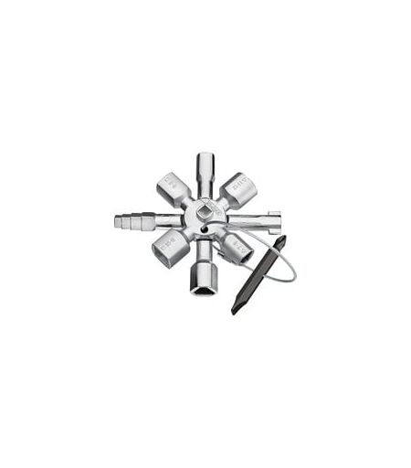 Der Knipex TwinKey 00 11 01 ist ein multifunktionaler Schlüssel für Betätigung von Schließungen. Der achtstrahlige KNIPEX TwinKey 00 11 01 besteht aus zwei Kreuzen, die mit einem Magneten ineinander gesteckt werden. Der beiliegende Wendebit ist beidseitig benutzbar: Schlitz 1,0 x 7 mm und Kreuzschlitz PH2. Schlüssel und Wendebit sind durch ein stabiles Edelstahl-Drahtseil miteinander verbunden, womit der Wendebit nicht verloren gehen kann. ...