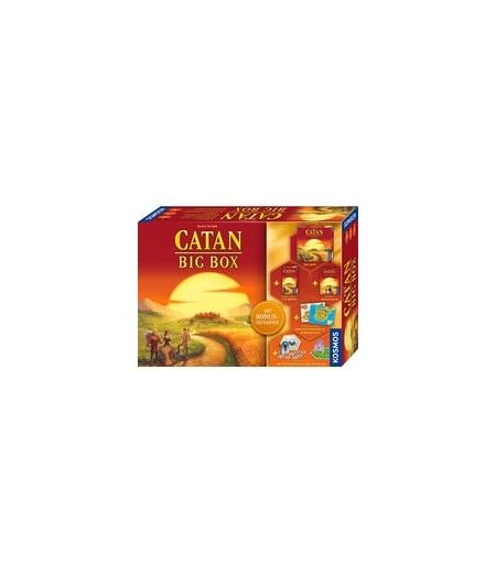 Mit der CATAN - Big Box kommt eine große Box voller Abenteuer in der Welt von CATAN. Diese Box enthält nicht nur das Grundspiel, sondern auch die Szenarien "Beste Freunde", "Iberische Halbinsel", Rickshaw Run", "Der Weihnachtsmann" und "Der Osterhase". So tauchen 3-6 Spieler ab 10 Jahren in die Welt von CATAN ein, legen Straßen an und gründen die ersten Siedlungen und Städte. Durch geschickten Handel mit Rohstoffen bringen sie ihre Insel zu Wohlstand. Dieses Set ermöglicht nicht nur den Einstieg in die Welt von CATAN, sondern bietet auch immer wieder neue Herausforderungen und Abwechslung. ...