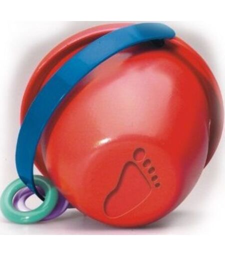 Baby-Eimer aus weichem elastischen Material, Boden mit Fussabdruck, mit Rasselringen und Löffel, rot - gelb sortiert. Durchmesser: 12 cm ...