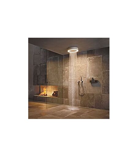Keuco Kopfbrause inkl. Leuchte mit variabler LED-Beleuchtung und Brausearm • Kombination von Licht und Wasser für das spezielle Duscherlebnis• für Wellness & Spa in den eigenen vier Wänden• Deckenduschkopf mit sanft prasselndem Regenstrahl• Korpus aus edlem Aluminium in weiß pulverbeschichtet• Stufenlos einstellbare Lichtfarbe von Warmweiß (2700 K) zu Tageslichtweiß (6500 K)• Stufenlose Dimmbarkeit für ein sinnliches Wellness-Gefühl• Leuchte ist gegen Staubeintritt und Strahlwasser aus beliebiger Richtung geschützt• Bedienung über einen 2-fach Taster mit 2-fach Wippe Bitte beachten Sie: • Ohne weiteres technisches Zubehör wird die Duschleuchte mit einem 5-adrigen Kabel vom Taster zur Duschleuchte angeschlossen und einfach in Betrieb genommen. • Die Duschleuchte stimmt mit zahlreichen nationalen und europäischen Vorschriften, insbesondere hinsichtlich der Verwendung elektrischer Geräte im Bad, überein Diese Leuchte enthält eingebaute LED-Lampen. + (LED), (LED), A (LED). Die Lampen können durch einen Fachhandwerker ausgetauscht werden. Lichtfarbe:Farbtemperatur einstellbar Farbtemperatur (k) stufenlos einstellbar von 2700 Kelvin bis 6500 Kelvin Fassung: LED Leistung Leuchtmittel: 12 Watt Leuchtmittel: LED fest verbaut Leuchtmittel inkl. : Ja Schutzart: IP65 Lieferumfang: Kopfbrause mit Brausearm für Deckenanschluss, Duschleuchte inkl. Montageplatte Leuchtenart Deckenspots unten Spannung Leuchte: 220-240 V Lichtsteuerung: externer 2-fach Taster Wasserverbrauch Kopfbrause: max. 15 l/min Lichtstrom: K 1300 Lumen ...