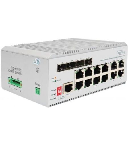 Digitus DN-651139 - 8 Port Gigabit Ethernet Netzwerk PoE Switch, Industrial, L2 managed, 4 SFP Uplink