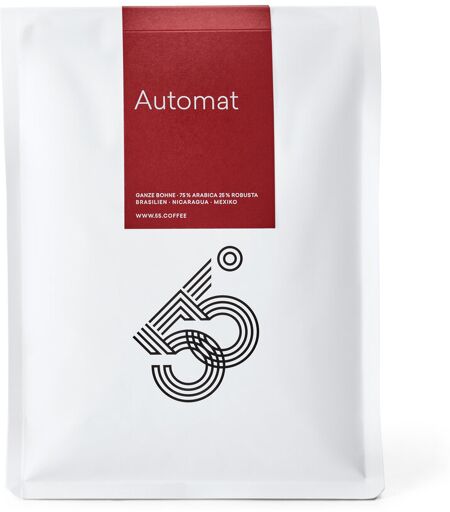 55 Degrees - Automat Caffè Crema - 1 kg Ganze Bohne Aufbewahrungshinweise: Trocken, dunkel und vor Wärme geschützt lagern. Zusammensetzung: Blend mit 75% Arabica-Bohnen aus Brasilien (35%) und Nicaragua (40%), 25% Robusta-Bohnen aus Mexiko Zubereitungsempfehlung: Für unseren Automat empfehlen wir die Zubereitung im Vollautomaten oder mit der Siebträgermaschine. Er eignet sich besonders gut als Caffè Crema oder Americano. Für die Zubereitung als Caffè Crema im Vollautomaten empfehlen wir folgendes Brührezept: 1. Stelle den Mahlgrad auf eine mittlere Stufe ein. 2. Brühe den Kaffee wie gewohnt und stelle ggf. den Mahlgrad nach. Für die Zubereitung als Americano im Siebträger empfehlen wir folgendes Brührezept: 1. Stelle die Wassertemperatur deiner Siebträgermaschine auf 95 °C ein. 2. Wir empfehlen 16 g Kaffee. Am besten du mahlst den Kaffee frisch mit der Handmühle oder einer elektrischen Kaffeemühle. Wähle einen feinen Mahlgrad. 3. Nutze den Tamper, um das Kaffeepulver festzudrücken und spanne den Siebträger ein. Starte danach direkt den Brühvorgang. 4. Wir empfehlen eine Brewratio von 1:3. Das bedeutet: Bei 16 g Kaffee sollten 50 ml Kaffee wieder aus der Siebträgermaschine rauslaufen. Insgesamt sollte der ganze Brühvorgang in 25 Sekunden abgeschlossen sein. 5. Wir verlängern den Kaffee mit 120 g heissem Wasser. Geschmack > Geschmacksprofil: Dunkle Schokolade, schwarzer Pfeffer, brauner Zucker Spezialitätenkaffee von Rösterei 55 Degrees aus HamburgGeschmacksprofil: Dunkle Schokolade, schwarzer Pfeffer, brauner ZuckerBlend mit 75% Arabica-Bohnen aus Brasilien (35%) und Nicaragua (40%), 25% Robusta-Bohnen aus MexikoHerkunft: Capim Branco in Brazilien, Finca Los Andes & La Pavona in Nicaragua und Finca Fulda in MexikoAufbereitung: natural (Brazilien) / washed (Nicaragua & Mexiko)Varietät: Yellow Icatu / Red Catuai, Caturra, Paca / Catuai, Caturra, Sachimor ...