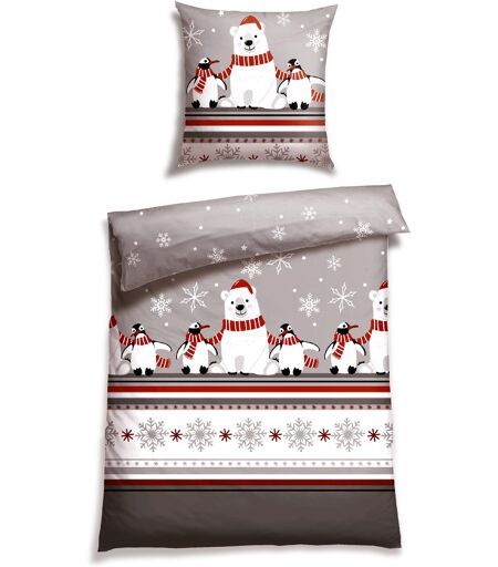 Bettwäsche, mehrfarbig gemustert mit winterlichen Pinguinen und Eisbären - aus der SCHIESSER Kollektion für Heimtextilien, 2-teilig, bestehend aus Bett- und Kissenbezug - verfügbar in den Größen: 135x200cm/80x80cm und 155x220cm/80x80cm - OEKO-TEX® MADE IN GREEN(M21LRE495 Hohenstein HTTI) / OEKO-TEX® STANDARD 100(10.HTR.84763 Hohenstein) - hochwertiger Reißverschluss ermöglicht ein einfaches Beziehen - waschbar bis 60°; nur mit geschlossenem Reißverschluss auf Links waschen - in hochwertiger Feinbiber-Qualität / OEKO-TEX® STANDARD 100 (10.HTR.84763 Hohenstein) ...