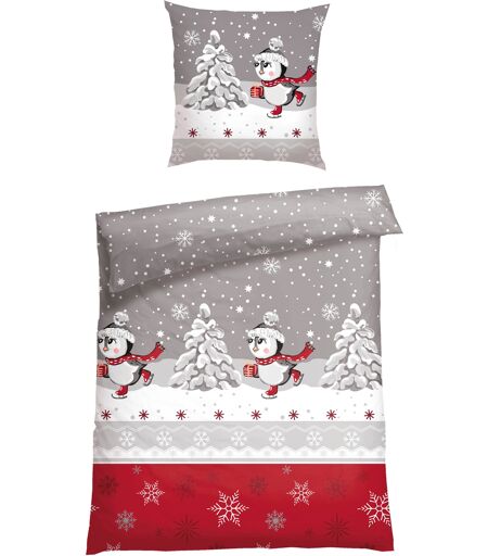 graue Bettwäsche mit winterlichem Schneemann-Motiv - aus der SCHIESSER Kollektion für Heimtextilien, 2-teilig, bestehend aus Bett- und Kissenbezug - verfügbar in der Größe: 135x200cm/80x80cm - OEKO-TEX® STANDARD 100(10.HTR.84763 Hohenstein) / OEKO-TEX® MADE IN GREEN(M21LRE495 Hohenstein HTTI) - hochwertiger Reißverschluss ermöglicht ein einfaches Beziehen - waschbar bis 60°; nur mit geschlossenem Reißverschluss auf Links waschen - in hochwertiger Feinbiber-Qualität ...