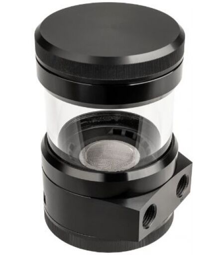 AGB von aqua computer, für D5-Pumpen aller Hersteller, aus widerstandsfähigem Borosilikatglas, 110 ml Füllmenge, mit Edelstahlfilter, inkl. Halteru ...