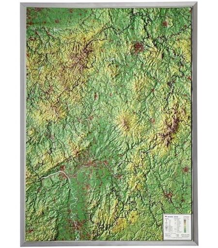 Georelief Hessen Gross 1:350.000 Reliefkarte mit Aluminiumrahmen