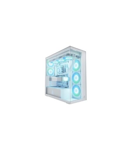 Der Xtender ist ein High-Airflow-Panorama-Gehäuse, das für eine maximale Luftzirkulation entwickelt wurde. Fünf vorinstallierte Lüfter sorgen für eine effiziente Kühlung leistungsstarker Komponenten. Das auffällige E-ATX-Gehäuse ist darüber hinaus mit modernen Anschlüssen und jeder Menge Platz für Technik ausgestattet. Besonderes Highlight des ARCTIC Xtender ist die moderne Glasoptik, die durch eine lückenlose Verbindung von Front und Seitenteil aus gehärtetem Glas entsteht. Im Xtender kommen ab Werk gleich fünf adressierbare ARGB--Lüfter zum Einsatz, von denen drei invertiert sind und für einen idealen Airflow die Luft von der Seite ins Gehäuse ziehen. Wer sein Gehäuse lieber mit Wasser kühlen möchte, kann neben einem 420-mm-Radiator auch gleichzeitig einen weiteren Radiator von bis zu 420 mm betreiben. Unterstützt werden drei 2,5"-Laufwerke hinter dem Mainboard-Tray. Der herausnehmbarer Laufwerkskäfig bietet Montageschienen für zwei 3,5"/2,5"- und ein weiteres 2,5"-Laufwerk. Mit einem Platz von 482 mm kommen auch große Grafikkarten im Xtender zum Einsatz. Zusätzlich können CPU-Kühler eine Höhe von bis zu 171 mm haben und Netzteile eine Länge von bis zu 318 mm. Die durchdachten Aussparungen und die optimal platzierten Kabelhalter sorgen für einfaches Kabelmanagement. Leicht entfernbare, verstärkte Filter schützen vor Staub und ermöglichen eine schnelle Reinigung. ...