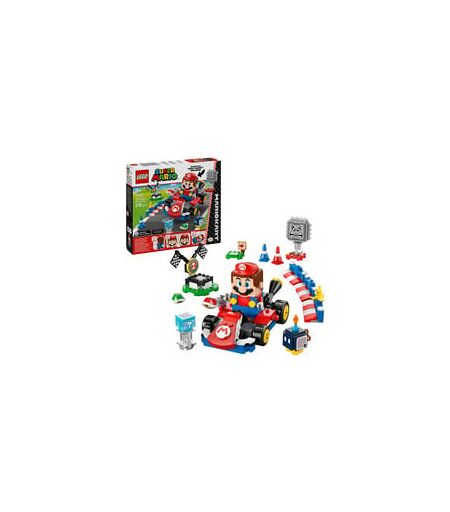Mit diesem Spielset aus der Welt von LEGO Super Mario entstehen eine Rennstrecke und ein Standard-Kart aus LEGO-Steinen - so kann LEGO Mario in interaktive Rennen geschickt werden. Das Bauset beinhaltet eine interaktive LEGO Mario Spielzeugfigur sowie ein Standard-Kart mit Driftfunktion und Muschelkatapult für jede Menge Actionspaß. Es gibt einen Startbereich, zusammensteckbare Streckenbegrenzungen, Leitkegel und einen Siegerkreis. Lass LEGO Mario das Standard-Kart fahren, um Mario Kart Sound- und Spezialeffekte zu erzeugen, digitale Belohnungen von der Itembox zu erhalten und den Bob-omb und den Steinblock zu besiegen. Sieh dir an, wie LEGO Mario auf die grünen und roten LEGO Platten reagiert! ...