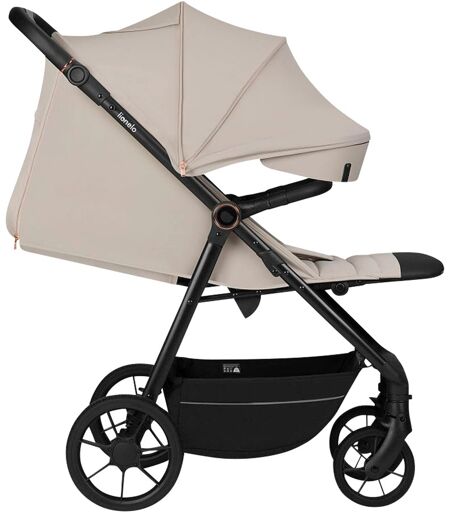 Mit dem Buggy IVA von Lionelo seid Ihr bereit für den nächsten Ausflug: Der Wagen überzeugt mit funktionalen und komfortablen Eigenschaften. Altersempfehlung: ab 6 Monaten Belastbarkeit: bis 22 kg Verwendung: geländetauglich Gewicht: 10,15 kg Räder: große, wartungsfreie PU-Räder mit Doppelfederung, vorn schwenk- und feststellbar Lieferumfang: Gestell mit Rädern und Korb, Sitzeinheit mit Verdeck und Vorderbügel Gestell: faltbar, höhenverstellbarer Schieber (5 Positionen) mit Kunstleder-Bezug, Feststellbremse, Korb Sitzeinheit: bis in die Liegeposition neigbare Rückenlehne, verstellbare Fußstütze, 5-Punkt-Gurt mit Magnetschnalle, schwenk- und abnehmbarer Vorderbügel mit Kunstleder-Bezug, ausziehbares XXL-Verdeck mit Sonnenblende und Belüftungsfenster, Belüftungspaneel in der Liegeposition, reflektierende Details Sicherheit und Komfort Der Buggy IVA von Lionelo setzt auf hochwertige Materialien und ein durchdachtes Design. Die nach vorn ausgerichtete Sitzeinheit lädt Dein Kind ein, es sich bequem zu machen. Das Kleine kann aufrecht sitzend unterwegs sein oder sich entspannt zurücklehnen. Sowohl die Rückenlehne als auch die Fußstütze lassen sich verstellen und auf die Stimmung des Minis abstimmen. Der gepolsterte 5-Punkt-Gurt macht es Dir leicht, das Kleine im Wagen anzuschnallen. Er ist mit einer Magnetschnalle ausgestattet, die sich fix öffnen und schließen lässt. Der kunstlederbezogene Bügel ist für ein unkompliziertes Ein- und Aussteigen schwenkbar. Du kannst ihn abnehmen, sobald Dein Kind keinen zusätzlichen Schutz mehr benötigt. Das große XXL-Verdeck verfügt nicht nur über ein Belüftungsfenster und eine Sonnenblende: In der Liegeposition hält es außerdem ein großes Belüftungspaneel bereit. Du kannst es öffnen, um Deinen Mini jederzeit mit ausreichend frischer Luft zu versorgen. Praktische Extras: Reflektierende Details erhöhen die Sichtbarkeit im Straßenverkehr und tragen so zu Eurer Sicherheit bei. Gestell und Fahrwerk Der zusammenklappbare Buggy bietet Dir einen kunstlederbezogenen Schieber, den Du in fünf verschiedenen Positionen an Deine Körpergröße anpassen kannst. Seine wartungsfreien PU-Räder finden sich dank ihrer Doppelfederung auch im Gelände zurecht. Für wendige Eigenschaften setzt der Wagen auf einen optionalen Schwenkmodus an der Vorderseite. Eine Feststellbremse sichert das Gefährt, wenn Ihr eine Pause einlegt oder am Ziel angekommen seid. Lieferumfang Der Buggy IVA besteht aus dem Gestell mit Rädern und Korb sowie der Sitzeinheit mit Verdeck und Vorderbügel. ...