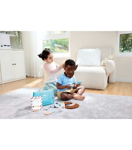 Das Friseur-Set von Hape bietet Deinem Kind tolle Anregungen für fantasievolle Rollenspiele. Friseur-Set von Hape 22 Teile inkl. Aufbewahrungstasche, Kamm, Haarschneidemaschine, Rasierer, Spiegel, Bürste, Schere, Rasierseife, Rasiermesser, Gel, Filzfrisuren, Bärte etc. Haarschneidemaschine mit Sound-Funktion aus Holz und Textil ab 3 Jahren geeignet Mit dem Friseur-Set von Hape ist Dein Kind bereit, Freunden und Familie im Spiel die Haare zu schneiden. Das Set enthält realistische Werkzeuge, die auch in einem Salon zum Einsatz kommen. Sogar Filzfrisuren und Bärte für eine Rasur sowie eine Haarschneidemaschine mit Sound-Funktion sind inklusive. Dein Kind kann nach Lust und Laune in die Rolle des Haareschneidenden oder die eines Kunden schlüpfen. Mit jeder Menge Spaß trainiert es im Spiel seine motorischen, sozialen und sprachlichen Fähigkeiten. Zugleich kann es Ängste vor dem eignen Friseurbesuch abbauen. ...