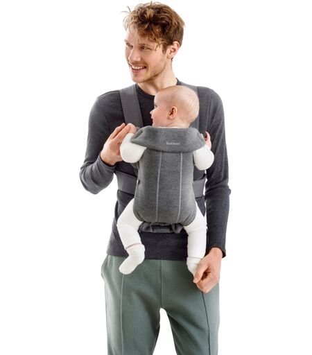 Klein, einfach, weich - die Babytrage Mini von BabyBjörn ist perfekt für die ersten Monate mit Deinem Baby. Du trägst Dein Kleines hoch an der Brust, sodass es immer Deinen Herzschlag spüren kann – ideal für Neugeborene mit ihrem großen Nähebedürfnis. Gleichzeitig hast Du alle Hände frei für die Herausforderungen des Alltags. Altersempfehlung: ab Geburt (mind. 53 cm) bis ca. 1 Jahr Belastbarkeit: 3,2-11 kg Trageweisen: Bauchtrage mit Blickrichtung zum Tragenden oder mit Blickrichtung nach vorne (ab 5 Monaten) Verschluss: verstellbare Schnallen Gewicht: 510 g Ausstattung: stufenlos einstellbare Größe und Kopfstütze, abnehmbares Vorderteil Material: anschmiegsamer 3D Jersey, maschinenwaschbar Sicherheit und Komfort Die Babytrage ist ab der Geburt verwendbar (Mindestgewicht 3,2 kg). Das Vorderteil ist komplett öffenbar, sodass Du Dein Baby leicht hineinlegen kannst. Die weichen Materialien schmiegen sich an Rücken, Beine und Hüfte an; gleichzeitigen stützen sie zuverlässig. Durch den Stoff kannst Du die Position Deines Kindes sowie die natürliche C-Kurve des Rückens spüren. Die verstellbare wie stabile Kopfstütze ist in den ersten fünf Monaten von großer Wichtigkeit: Sie stützt Kopf und Nacken, bis Dein Kind sein Köpfchen selbst halten kann. Für Babys zwischen 3,2 und 4,5 Kilogramm nutzt Du die Beinschlaufen, um die Beinöffnungen zu verkleinern. Praktisch: Wird sie nicht gebraucht, lässt sich die Trage kompakt zusammenlegen. So passt sie kinderleicht in Wickeltasche oder Kinderwagenkorb. Trageweisen und Befestigung Bis zu einem Alter von fünf Monaten trägst Du Dein Kind mit dem Gesicht zu Dir. Danach kannst Du es auch gelegentlich mit Blick nach vorne tragen. Die Babytrage BabyBjörn Mini ist unkompliziert in der Handhabung. Sie hat nur wenige verstellbare Schnalle, sodass Du sie Tag und Nacht schnell anlegen kannst. Um Dein Baby hineinzulegen, kannst Du die Trage einfach öffnen und das gesamte Vorderteil abnehmen. Besonderheiten BabyBjörn Mini ist in drei Material-Varianten erhältlich: 3D Jersey, 3D Mesh und Cotton. Die Mesh- und Jersey-Babytragen sind aus innovativen 3D-Geweben hergestellt. Diese bestehen aus drei Lagen – Innen-, Außen- und Zwischenlage. Statt einer Füllung, durch die die Trage zu warm werden könnte, ist die Zwischenlage aus einem dünnen, einfaserigen Faden gefertigt. Die verleiht der Babytrage Stabilität – wie ein wattiertes Material – gleichzeitig ist eine gute Luftdurchströmung garantiert. So bleibt die Babytrage beim Tragen kühl und luftig. Der innovative 3D Jersey ist so weich wie Dein Lieblings-T-Shirt. Dabei ist das Material angenehm glatt sowie anschmiegsam und passt sich an Dein Baby an. 3D Mesh überzeugt mit seinem kühlen und luftigen Netzgewebe und einer weichen Innenseite. Das Gewebe ist besonders luftdurchlässig und trocknet nach dem Waschen schnell. Die Cotton-Variante ist aus BCI-zertifizierter Baumwolle hergestellt. Diese ist im Pobereich elastisch und durch Satinwebung weich und anschmiegsam.... ...