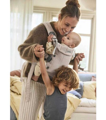 Die Babytrage Harmony von BabyBjörn ist die perfekte Wahl für Eltern, die eine funktionale Babytrage möchten, die ab der Geburt bis zu einem Alter von ca. drei Jahren genutzt werden kann. Altersempfehlung: ab Geburt (mind. 3,2 kg, Mindestgröße 53 cm) Belastbarkeit: bis 15 kg (Maximalgröße 100 cm) Trageweisen: Bauchtrage (Blickrichtung nach innen), Fronttrage (Blickrichtung nach außen), Rückentrage Verschluss: einstellbarer Hüftgurt mit Schnalle, anpassbare Schultergurte mit Schnallen an der Taille und im Brustbereich Gewicht: 900 g Ausstattung: gepolsterte Schultergurte, ergonomische Lendenunterstützung, bequemer Hüftgurt, 3-fach einstellbare Kopfstütze, einfach nutzbare Schnallen, anpassbarer Sitzbereich Sicherheit und Komfort In der Harmony von BabyBjörn sind Neugeborene ab einem Gewicht von 3,2 Kilogramm und einer Mindestgröße von 53 Zentimetern sicher aufgehoben: Die stabile Kopfstütze kann individuell auf Dein Kleines eingestellt werden, der Sitzbereich lässt sich ebenfalls auf das Baby anpassen und garantiert so eine korrekte Unterstützung für die Beine und Hüften des Kleinen. So wächst die Trage mit Deinem Baby bis ins Kleinkindalter mit und garantiert, dass es in jedem Alter in der ergonomischen Anhock-Spreiz-Haltung bzw. M-Position sitzt. Die anpassbare Kopf- und Nackenstütze stützt den Kopf optimal, wenn die Kleinen schlafen. Sitzen die Kinder mit Blickrichtung nach vorne, kann die Stütze in drei Stufen nach außen weggefaltet und mit Druckknöpfen befestigt werden. Trageweisen und Befestigung Die Harmony lässt sich auf dem Bauch mit Blickrichtung nach innen und außen oder auf dem Rücken tragen. Die weich gepolsterten Schultergurte können im Rucksackstil angelegt werden. Das Gurtsystem ist flexibel gestaltet, sodass der Nachwuchs angenehm getragen werden kann. Der druckentlastende Hüftgurt ist gepolstert und kann in der Länge verstellt werden. Er verteilt das Gewicht gleichmäßig, verfügt über eine Extra-Stütze an der Lende und sorgt so für einen hohen Tragekomfort. Auch die breiten, gepolsterten Schultergurte können verstellt und so an den Träger angepasst werden. Die Schnallen an den Gurten garantieren, dass die Verschlüsse immer sicher geschlossen bleibt. Besonderheiten Die Harmony ist vom International Hip Dysplasia Institut als „gesund für die Hüften“ ausgezeichnet. Die Trage kann in der Maschine bis 40°C gewaschen werden und ermöglicht so eine einfache Reinigung. ...