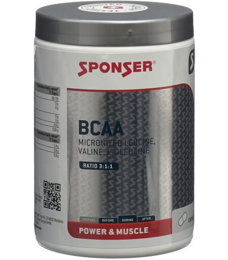 Sponser BCAA Kaps BCAA 3:1:1 Produktdetails Die Sponser BCAA Kapsel bietet eine gezielte Supplementierung der drei essentiellen verzweigtkettigen Aminosäuren: L-Leucin, L-Valin und L-Isoleucin im Verhältnis 3:1:1. Diese Kombination ist besonders vorteilhaft für Sportler und Fitnessbegeisterte, die den Muskelaufbau aktiv unterstützen möchten. Eigenschaften Verhältnis der Aminosäuren: 3:1:1 (Leucin, Valin, Isoleucin) Mikronisierte Aminosäuren für optimale Absorption Geschmacksneutrale Kapseln für eine vielseitige Anwendung Einfach zu dosieren, ideal für unterwegs Unterstützt die Protein-Synthese im Körper Hinweise zur Einnahme vor oder nach dem Training Die enthaltenen mikronisierten Aminosäuren fördern die schnelle Verfügbarkeit im Körper, was sie effektiver zur Protein-Synthese macht, als intakte Proteine. Diese Kapseln sind eine praktische Wahl für alle, die ihre Proteinaufnahme erhöhen möchten, ohne auf shakes oder geschmackliche Zusätze angewiesen zu sein. Inhaltsstoffe Aminosäuren (L-Leucin, L-Isoleucin, L-Valin), Kapselhülle vegetabil (E1204), Trennmittel Magnesiumstearat. Anwendung Die empfohlene Einnahme beträgt eine bestimmte Anzahl von Kapseln vor oder nach dem Training. Dies ermöglicht es, die Vorteile der BCAA optimal zu nutzen und zu spüren. Es wird empfohlen, die Einnahme in einem aktiven Lebensstil zu integrieren. Zusammensetzung Kapseln mit mikronisierten Aminosäuren, die eine gezielte Unterstützung für Muskelaufbau bieten. Nährwerte Die Nährwerte pro 100 g sind: Energie 1360 kJ / 320 kcal, Fett 0 g, Kohlenhydrate 0 g, Eiweiss 80 g, Leucin 16.1 g, Isoleucin 48.3 g, Valin 16.1 g, Salz 0 g. Hersteller SPONSER SPORT FOOD AG ...