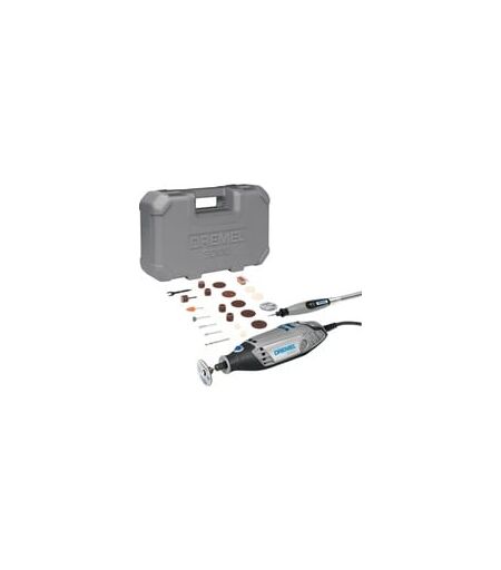 Das Dremel-Set 3000-1/25 enthält das beliebte leistungsstarke Allround-Multifunktionswerkzeug Dremel 3000 mit EZ Twist Anschlusskappe. Der handliche Schleifer eignet sich perfekt für Heimwerkerprojekte, die eine leistungsfähige, präzise Oberflächenbearbeitung auf verschiedenen Materialien erfordern. Mit den 25 enthaltenen Zubehören wechselt man in kürzester Zeit zwischen den unterschiedlichsten Anwendung: Vom Schnitzen, Gravieren, Schleifen, Reinigen, Polieren bis zum Schneiden und mehr. Zusammen mit der biegsamen Welle für präzise detailgetreue Arbeiten oder schwer zugängliche Stellen verhilft dieses Set mühelos zu sauberen Ergebnissen. Durch die variablen Geschwindigkeitseinstellungen und die große Auswahl an enthaltenem Zubehör kann das Gerät auf vielen verschiedenen Materialien verwendet werden. Der Dremel 3000 kann mit allen Zubehören für Dremel Multifunktionswerkzeuge und den meisten Vorsatzgeräten verwendet werden. Das Set wird mit einem Werkzeughalter geliefert, mit dem das Gerät an der Wand angebracht und das Kabel komfortabel aufgewickelt werden kann. ...