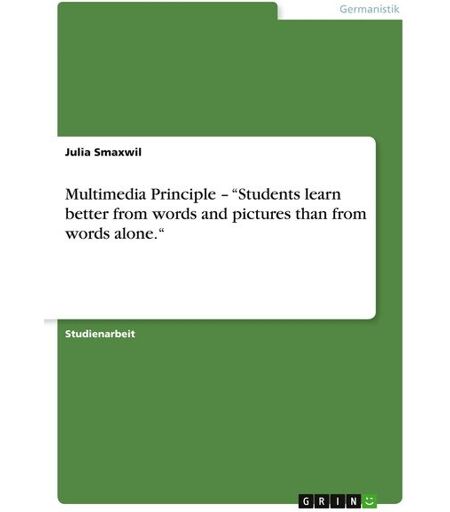 Studienarbeit aus dem Jahr 2005 im Fachbereich Germanistik - Linguistik, Note: 1,0, Universität Duisburg-Essen, 3 Quellen im Literaturverzeichnis, Sprache: Deutsch, Abstract: Wenn den Schülern/Schülerinnen zwei Medien (Text und Bild) dargeboten werden, so sind sie in der Lage verbale und bildliche Modelle zu konstruieren und Verbindungen zwischen diesen zu erstellen. "Students learn better from words and pictures than from words alone." Man könnte auch Fragen, ob es Schülern beim lernen hilft, wenn im Unterricht Bilder an das Verbale angehängt werden. Die Ergebnisse aus einer Untersuchung die Richard Mayer durchführte werden in dieser Arbeit vorgestellt. ...