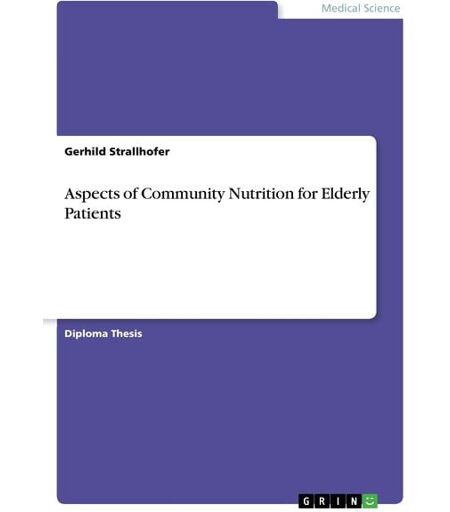 Diploma Thesis from the year 2008 in the subject Health - Nutritional Science, grade: 3.0, University of Vienna (Ernährungswissenschaften), language: English, abstract: In the year 2000 I started to work at ward departments in an hospital in Helsinki, Finland. During my working experience I saw lots of very skinny, old people. In such institutions optimal medical care and nutrition service should be provided. What is going wrong in community nutrition? How can you improve the situation? In the beginning they were only offering four meals per day. In the summer of 2006 I noticed that a fifth meal has been added- as a sweet snack! Is this really the right and healthy way to increase the energy intake of elderly people? This is a shortened version of my Master's Thesis, because I am not publishing the composition of meals planned by the catering company. My intention of this thesis is to give an overview of the nutritional situation of elderly people in an hospital. Nutrition in hospital is still being treated like an orphan child. Medications and medical care has more priority. In chapter "Nutrition and Elderly People" an overview of physiological changes and a description of nutrients and its relevance to elderly people is presented. The next chapter deals with diseases that are associated with higher age. Those should be kept in mind for planning community nutrition. The chapter "Community Nutrition" is also based on the information from the previous chapters to found a nutrition that suits best the needs of elderly patients living in a community. ...