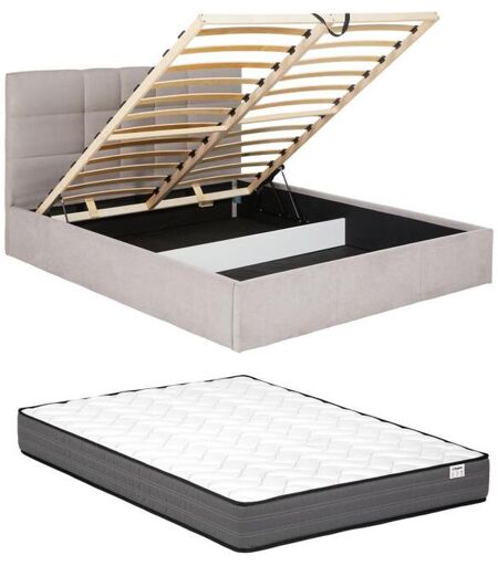 Bett mit Bettkasten + Matratze - 160 x 200 cm - Stoff - Beige - ELIAVA von Pascal Morabito