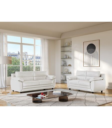 Vente-unique Couchgarnitur 3+2 - Kunstleder - Weiß - MANOA