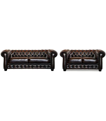 Vente-unique Chesterfield Garnitur 3+2 - Büffelleder - Braun - BRENTON