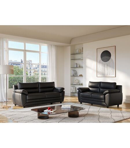 Vente-unique Couchgarnitur 3+2 - Kunstleder - Schwarz - MANOA