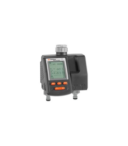 Mit dem GARDENA Bewässerungscomputer MultiControl duo (1874-20) bewässert man zwei verschiedene Gartenbereiche, z.B. den Rasen hinter dem Haus und die Blumenbeete davor. Beide Ausgänge sind unabhängig voneinander programmierbar, man wählt Bewässerungsstart, Dauer und Häufigkeit für jeden Bereich individuell. Gießen ist bis zu drei Mal am Tag für jeweils maximal 3 Stunden und 59 Minuten wähl- und programmierbar. Das praktische Bedienteil des Bewässerungscomputers ist abnehmbar und dadurch bequem programmierbar. Die Funktionen wählt man per Tastendruck aus. Das ist dank intuitiver Bedienung und schrittweiser Anzeige aller Bewässerungsdaten sehr einfach. Zudem sind dank des großen Displays alle Informationen sehr übersichtlich ablesbar. Pro Ausgang lässt sich ein wassersparender GARDENA Regen- oder Bodenfeuchtsensor anschließen, dessen intelligente Funktion die automatische Bewässerung bei ausreichender Bodenfeuchte oder beginnendem Regen unterbricht oder verhindert. Beide Ausgänge sind auch durch einen Sensor steuerbar. Beim Nachtprogramm startet die Bewässerung automatisch, wenn ein angeschlossener Bodenfeuchtesensor Trockenheit meldet. Der Bewässerungscomputer ist für Wasserhähne mit 26,5mm (G ¾)- und 33,3mm (G1)-Gewinde geeignet bei einem Betriebsdruck von 0,5 - 12 bar. Bestückt mit einer 9 V Alkaline-Batterie (nicht enthalten) hat der Bewässerungscomputer eine Betriebsdauer von ca. einem Jahr. Über die Batteriestandsanzeige ist ablesbar, wann die Batterie gewechselt werden muss. ...