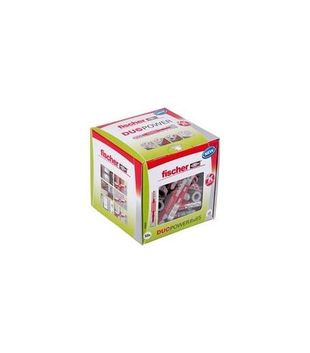 Der fischer Universaldübel DUOPOWER 538251 bietet sehr gute Haltewerte durch 2 Komponenten: Die graue Komponente aus hochwertigem Nylon aktiviert je nach Baustoff automatisch das optimale Funktionsprinzip (Spreizen, Klappen, Knoten) für besten Halt. Die Expansionsflügel der roten Komponente unterstützen die sichere Verspreizung und bieten zusätzliche Sicherheit zur grauen Komponente. Die ausgeprägten Mitdrehsicherungen verzahnen sich im Baustoff und verhindern das Mitdrehen im Bohrloch. Die Leichtlauföffnung sorgt für ein einfaches Ansetzen der Schraube und sichere Führung und Fixierung im Schraubenkanal. Der fischer DUOPOWER verhindert das Überdrehen der Schraube und gibt die bestmögliche Rückmeldung (Feel-Good-Factor) des Dübels. Man spürt, dass der Dübel perfekt sitzt. Der am Dübelkopf angeformte Rand verhindert außerdem, dass der Dübel ins Bohrloch rutscht. ...