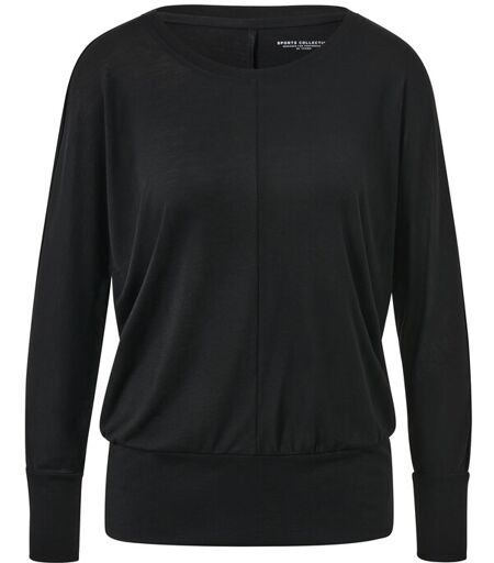 Sport-und-Yogashirt, schwarz Farbe: Schwarz Material: 65% Polyester, 35% Viskose (LENZING™ ECOVERO™) Masse: Gesamtlänge ca. 67 cm (Gr. M 40/42) Passform: Comfort Fit Mit FledermausärmelnAtmungsaktiv, feuchtigkeitstransportierend und schnelltrocknend durch DryActive Plus-AusrüstungBesonders weich fliessende Qualität mit ViskoseanteilBequemer Schnitt mit breiten Bündchen ...