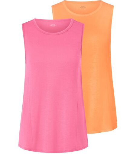 2 Sport-Tops, pfirsich und pink Farbe: 1x pfirsich, 1x pink Material: 65% Polyester (recycelt), 35% Viskose (LENZING™ ECOVERO™) Masse: Gesamtlänge ca. 66 cm (Gr. M 40/42) Passform: Regular Fit Atmungsaktiv, feuchtigkeitstransportierend und schnelltrocknend durch DryActive Plus-AusrüstungAngenehm weich fliessende Viskose-Stretch-Qualität Rundhalsausschnitt Abgerundeter Saum Mit recyceltem MaterialDiese Sport-Tops schonen Ressourcen. ...
