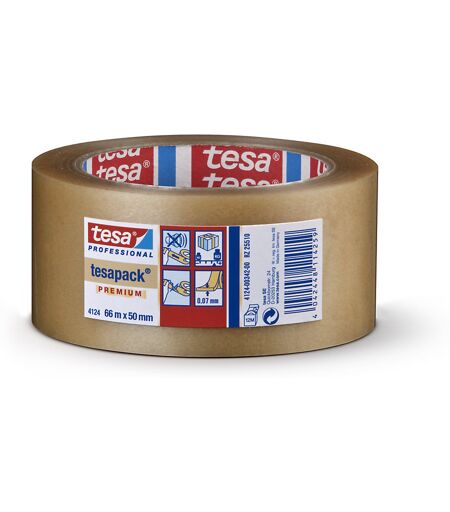 PVC-Packband, tesapack® 4124 Premium, VE 36 Rollen, transparent, Bandbreite 50 mm. Anlieferung = montiert. Klebeart = Naturkautschuk. Trägermaterial = PVC. Bandbreite = 50 mm. Bandlänge = 66 m. Farbe = transparent. Kerndurchmesser = 76,2 mm. Materialstärke = 64 µm. Abrollgeräusch = leise abrollend. Einsatzbereich = mittelschwere bis schwere Pakete. Reißkraft = 60 N/cm. Produkttyp = PVC-Packbänder. Hohe Reißfestigkeit. Premiumqualität - Garant für sichere Verpackung. Für den Verschluss mittelschwerer und schwerer Kartonagen. Feste Verklebung auf Well- und Vollpappe. Gleichmäßig und leise abrollend. Gesamtstärke 65 µm. Naturkautschuk. PVC-Band Reißfest, hohe Klebkraft, leise und gleichmäßig abrollend - für alle Kartonagen. ...
