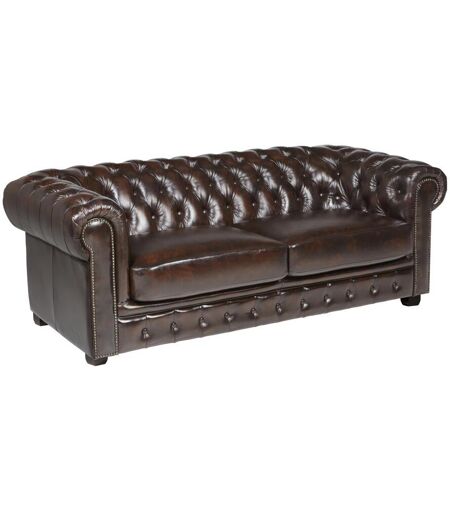 Vente-unique Chesterfield Ledersofa 3-Sitzer - 100% Büffelleder - Braun - BRENTON
