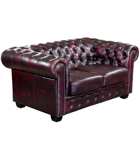 Vente-unique Chesterfield Ledersofa 2-Sitzer - Büffelleder - Rotbraun - BRENTON